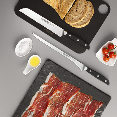 Los amantes del jamón tendrán a la serie Manhattan de Arcos como el mejor set de cuchillos con el que empezar a dar corte a su jamón. en este juego de cuchillería encontraremos: